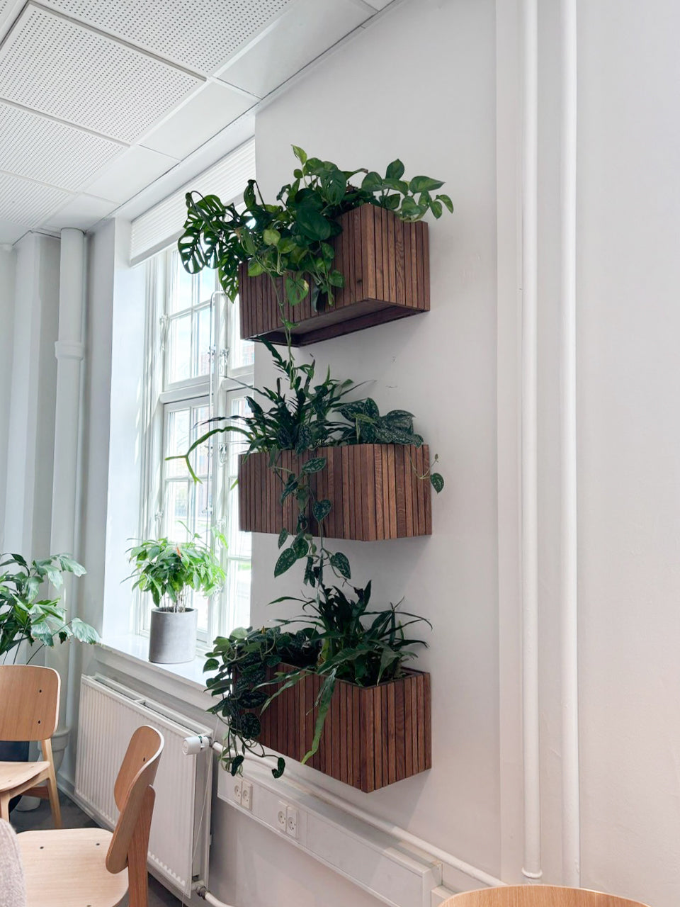 GrowWIDE is the mid-sized planter in the SQUARELY Copenhagen collection, designed specifically for architects, plant service companies, and workspace designers who create modern biophilic environments. Its streamlined proportions make it an ideal solution for office greenery, indoor landscaping, and green room dividers that support wellbeing and visual harmony in professional spaces.