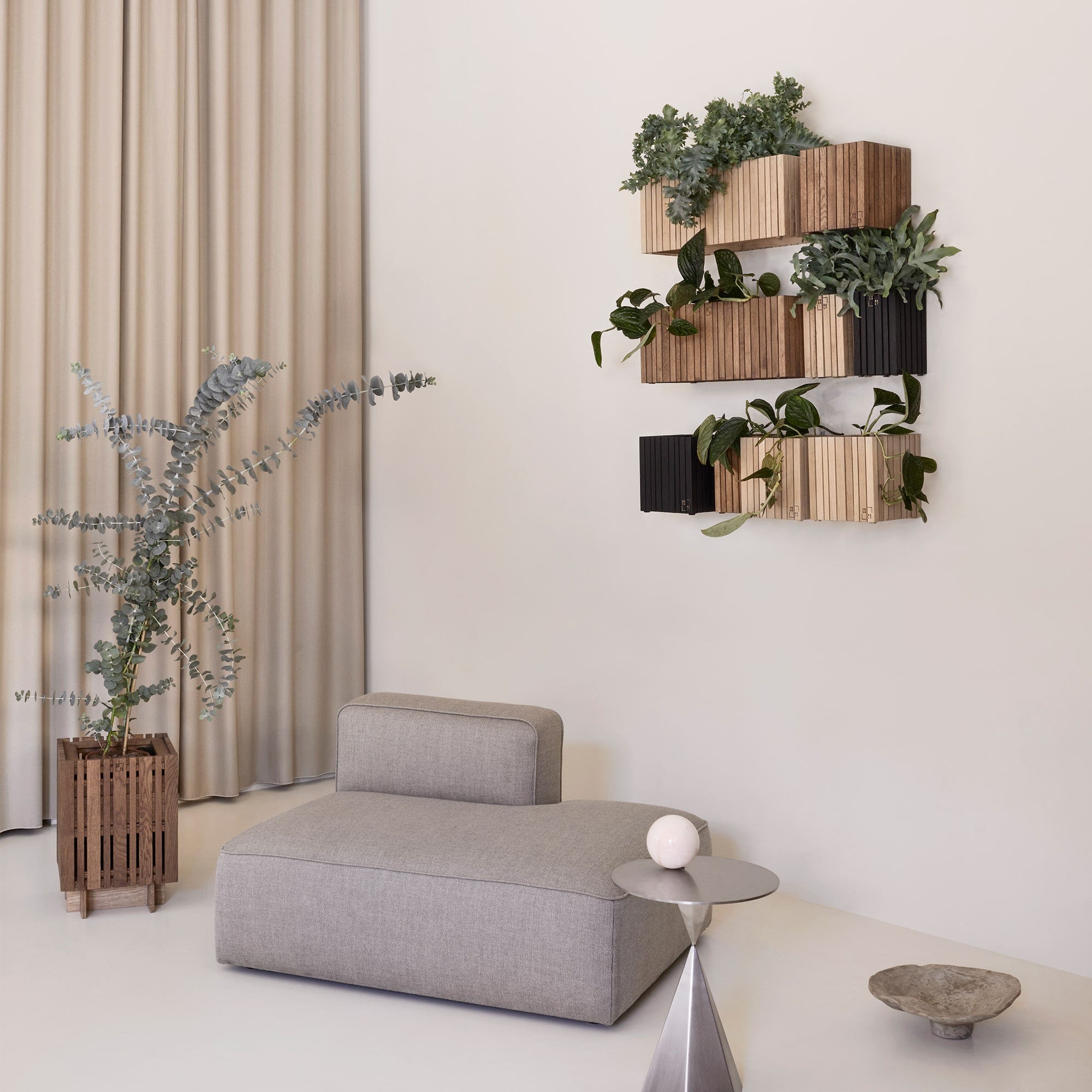 A combination of Danish wood-craft & innovative functionality. The cubic form of the planter is modest, yet gives a sophisticated touch to any space.